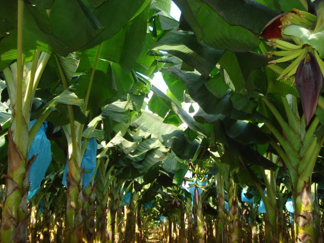 Finalmente, en las fotografías 9 a 12 se muestra cómo se encontraban las plantas ya paridas, se observa una adecuada cantidad de hojas y la Sigatoka controlada. Esto se tradujo en una buena producción de racimos.
