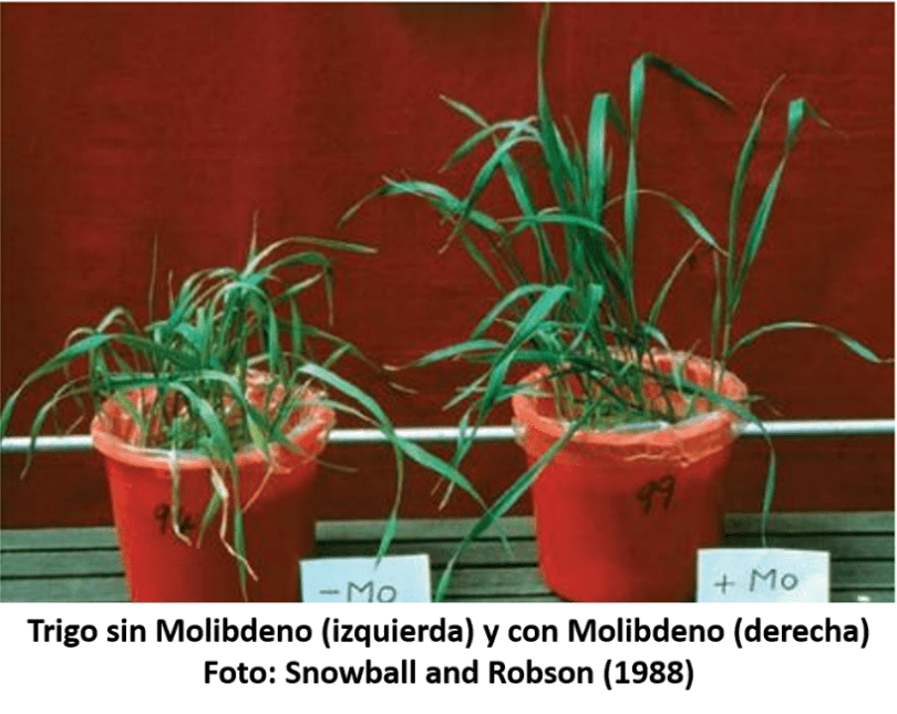 Por otra parte, si falta Molibdeno, es posible que también aumente la dependencia de las aplicaciones de insecticidas, fungicidas y nematicidas; aquí nuevamente se trata de Nitrógeno, pero esta vez estamos hablando de la forma en que éste se encuentra en la planta. En suelos con bajo contenido de Molibdeno, dicha forma será en gran medida Nitrógeno nítrico (NO3).