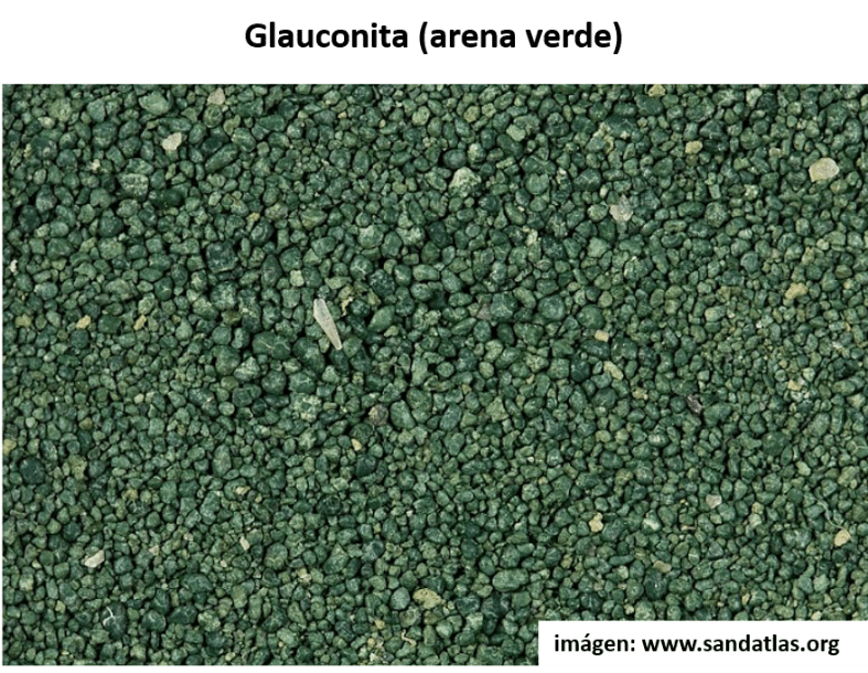 Otra fuente de Potasio de liberación lenta que es popular en la agricultura orgánica es la glauconita, mineral que se vende comúnmente como arena verde. El contenido total de Potasio de la arena verde es de alrededor del 7.0 %.