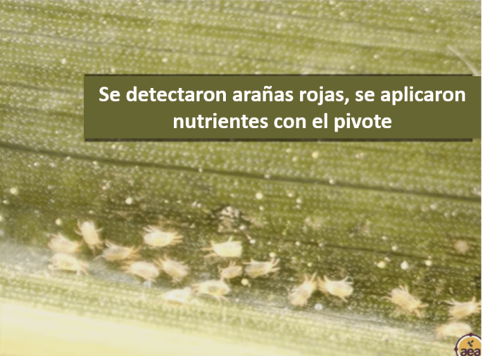 Con base en el análisis de savia de la planta, se comenzaron a aplicar nutrientes en el pivote superior y en 48 horas las arañas rojas estaban muertas.