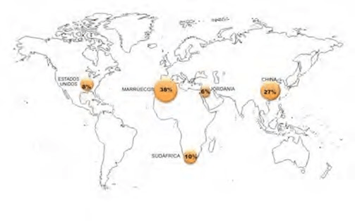 Aunado a este problema, las principales minas existentes en el mundo se encuentran en pocos países. Por ejemplo, el 80% de las reservas de fósforo se encuentran solamente en: Marruecos, China, Jordania y Sudáfrica.
