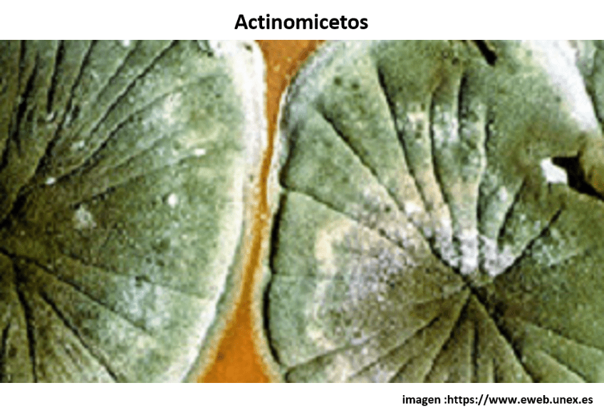 Actinomicetos: Un tipo de bacteria que tiene similitudes con los hongos. Es decir, al igual que las bacterias son organismos unicelulares y, al igual que los hongos, producen micelio.