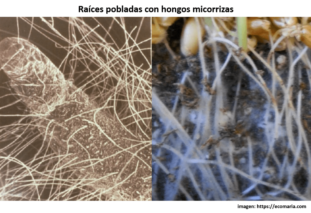 Algunos hongos del suelo forman una asociación simbiótica mutuamente benéfica (mutualista) con las raíces de las plantas superiores. Esta asociación simbiótica se conoce como asociación micorrízica. En ella, los hongos benefician a la planta al movilizar los nutrientes que se encuentran bloqueados en el suelo, en particular el Fósforo y el Fierro, que de otro modo serían de difícil acceso para las plantas y a cambio, la planta proporciona a los hongos un suministro relativamente constante de carbohidratos y azúcares como glucosa y sacarosa.