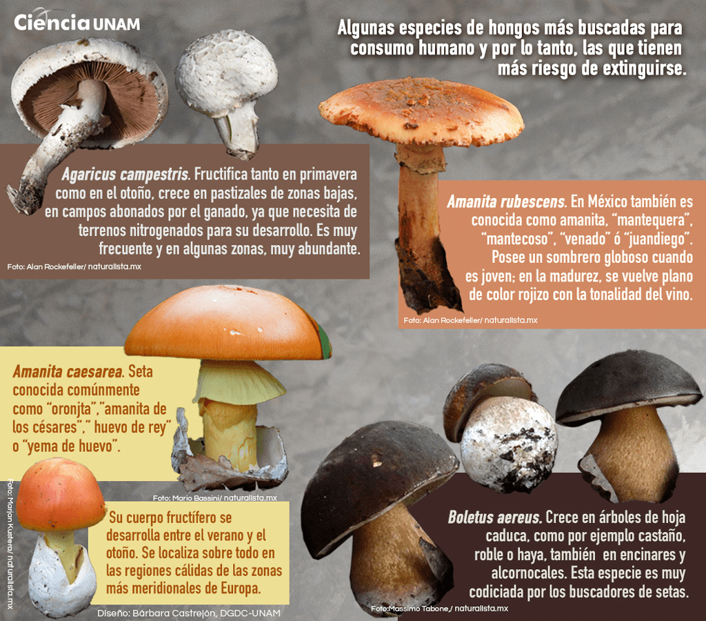 Los hongos comestibles podrían ser el alimento del futuro, ya que poseen una gran cantidad de proteínas fácilmente digeribles. El champiñón, por ejemplo, tiene aproximadamente 80% de agua y el 20% restante es materia seca. De ese 20 %, el 40 % es proteína, además de que contienen grasas, vitaminas y minerales, señala la Maestra en Ciencias Elvira Aguirre Acosta, encargada de la Colección de Hongos del Herbario Nacional de México del Instituto de Biología de la UNAM.