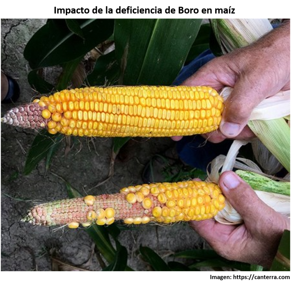 10. Llenado de grano en la parte superior: El Boro puede tener un gran impacto en el llenado de grano. Cuando las plantas de cereales como el maíz y el trigo carecen de Boro, la punta de la mazorca o de la espiga no se llena. Asimismo, hay mucho menos probabilidad de esterilidad de la semilla en el trigo fertilizado con Boro.