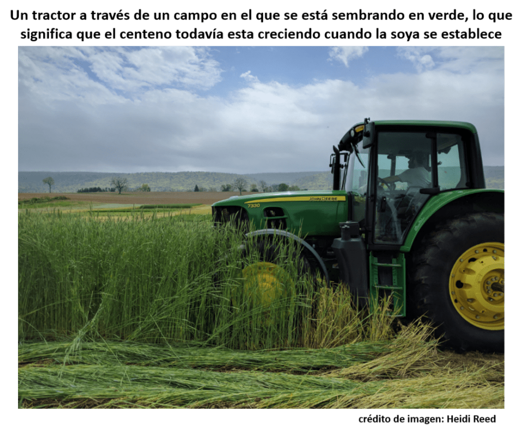 «Sembrar en verde» es cuando se elimina el cultivo de cobertura después de sembrar la soya. Esto significa que el cultivo de cobertura está verde y creciendo cuando se establece la soya. Los investigadores tenían curiosidad acerca de cómo el tiempo de terminación impactaría a la soya.