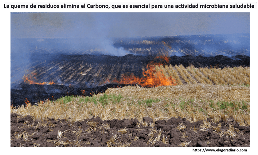 - La quema de rastrojos reduce la cantidad de protozoos que se alimentan de bacterias y hongos.