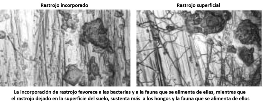 - La descomposición de residuos y la mineralización de nutrientes es más rápida debido a un mejor contacto suelo-rastrojo.