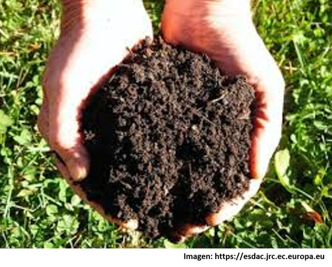 El suelo contiene Carbono en forma de materia orgánica. Este es material que proviene de plantas, tal como raíces o residuos vegetales (por ejemplo, el caso de los cultivos de cobertura). Otra fuente de Carbono es la materia orgánica añadida (por ejemplo, el estiércol).