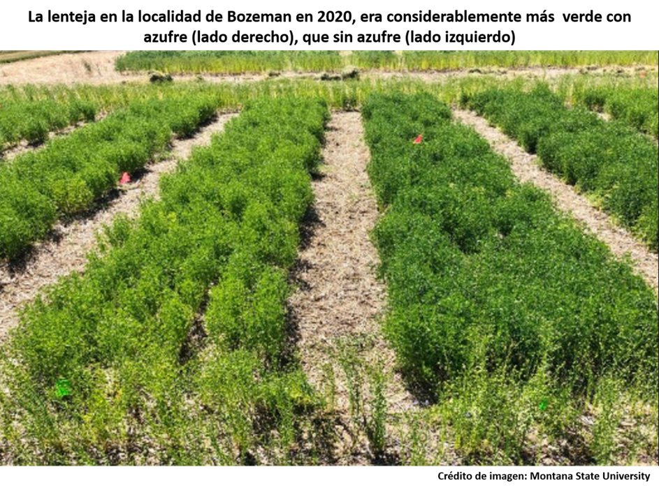 «Sin embargo, debido a varias respuestas positivas de alto rendimiento y fijación de Nitrógeno observadas, y al bajo costo de aplicar 5.0 libras de azufre por acre (5.6 kg/ha), la fertilización con azufre probablemente sea una buena decisión para muchos productores de lentejas», dijo Jones.