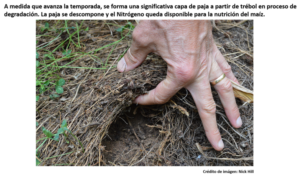 El mantillo vivo generalmente es una especie de planta que crece densamente y cerca del suelo, como el trébol. Los mantillos vivos se pueden sembrar antes o después de que se establece un cultivo.