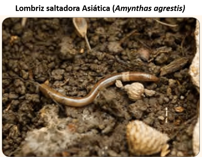 • Los bosques se ven afectados negativamente por lombrices no nativas, como las lombrices saltadoras asiáticas (Amynthas y Metaphire spp.) que se encuentran en todo el este y sur de los Estados Unidos, así como en partes del Medio Oeste y Oregón. Las lombrices saltadoras se alimentan en la superficie del suelo, consumen hojarasca y materia orgánica y dejan excrementos que están desprovistos de nutrientes y no pueden retener agua. Estas lombrices no reciclan ni mezclan nutrientes dentro de las capas del suelo ni crean canales para las raíces de las plantas. A medida que las lombrices asiáticas compiten y superan a otras lombrices, los cambios resultantes en la estructura del suelo reducen las plantas nativas y el hábitat y refugio para los invertebrados, aves, anfibios y otros animales silvestres.