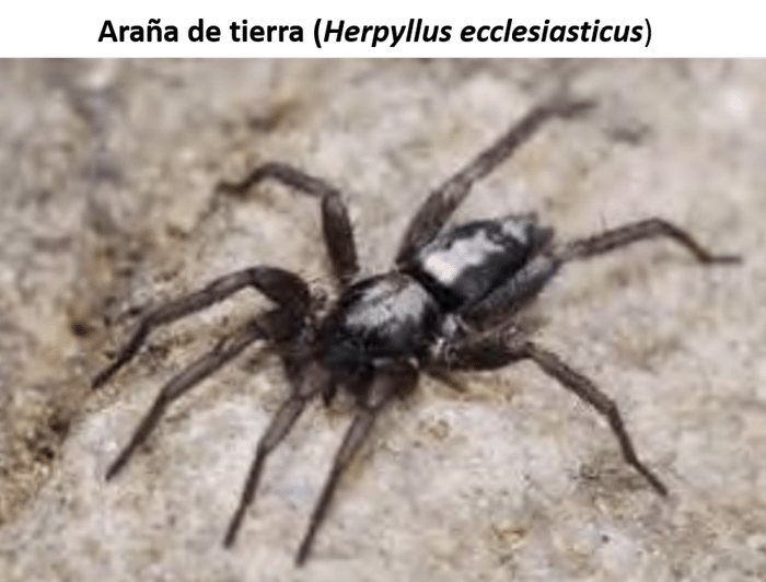 REINO: Animal FILO: Arthropoda CLASE: Arachnida ORDEN: Araneae FAMILIAS: Agelenidae, Atypidae, Clubionidae, Gnaphosidae, Hahniidae, Lycosidae, Salticidae