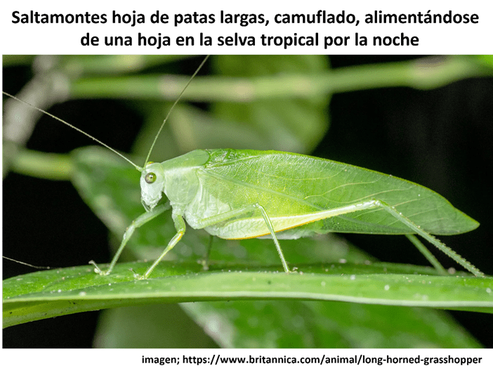 DE QUE SE ALIMENTAN: Los saltamontes comen todo tipo de plantas y algunas especies pueden ser muy destructivas para los cultivos o los pastizales; algunas también pueden buscar material vegetal muerto para alimentarse.