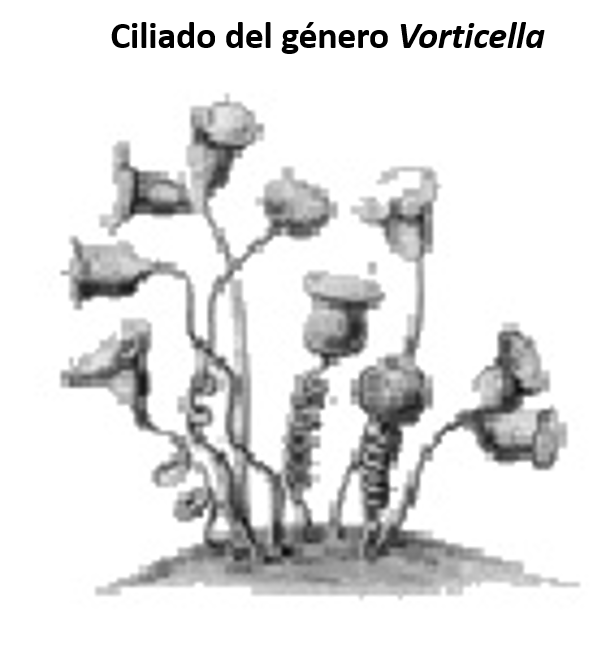 Ciliophora: caracterizados por la presencia de cilios utilizados para la locomoción, son los menos numerosos en el suelo, ejemplo, Halteria spp.